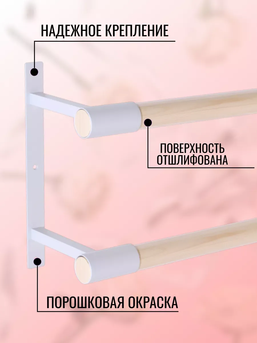 Разная высота поручней позволяет адаптировать станок под индивидуальные параметры детей и взрослых, и обеспечивает поддержку и безопасность при тренировках.