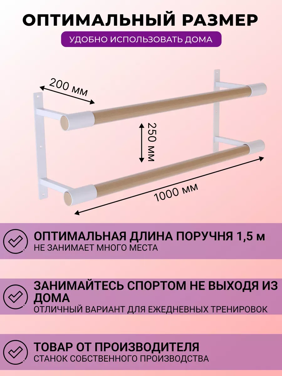 Разная высота поручней позволяет адаптировать станок под индивидуальные параметры детей и взрослых, и обеспечивает поддержку и безопасность при тренировках.