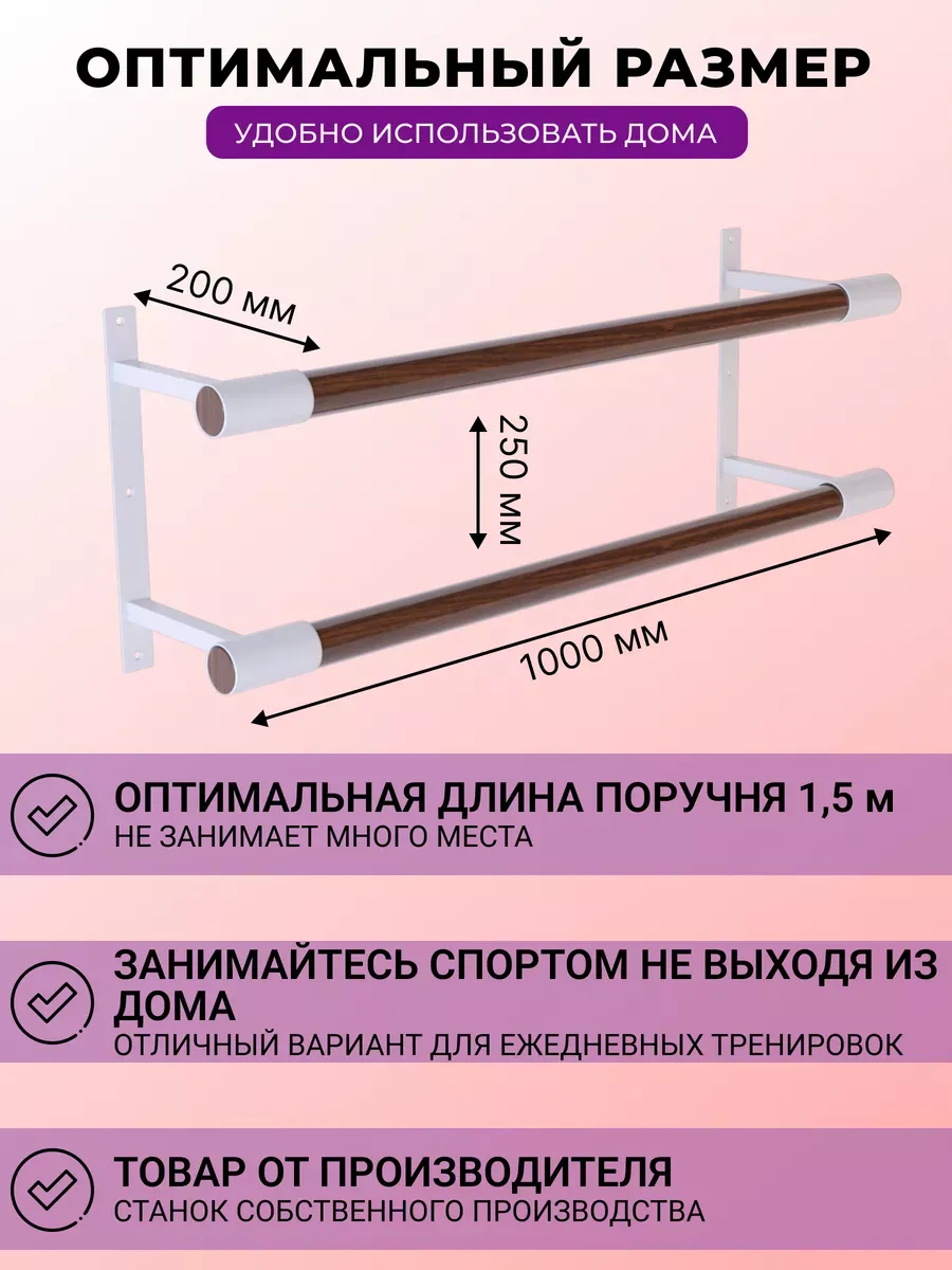 Разная высота поручней позволяет адаптировать станок под индивидуальные параметры детей и взрослых, и обеспечивает поддержку и безопасность при тренировках.