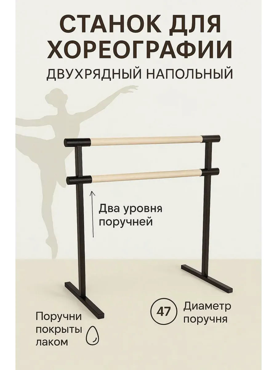 Переносной балетный станок для растяжки — идеальное решение для тренировок по танцам. Устойчивая стойка подходит для занятий балетом, отработки шпагата и общей физической подготовки. Благодаря оптимальной высоте и прочной конструкции, она удобна как для детей, так и для взрослых.