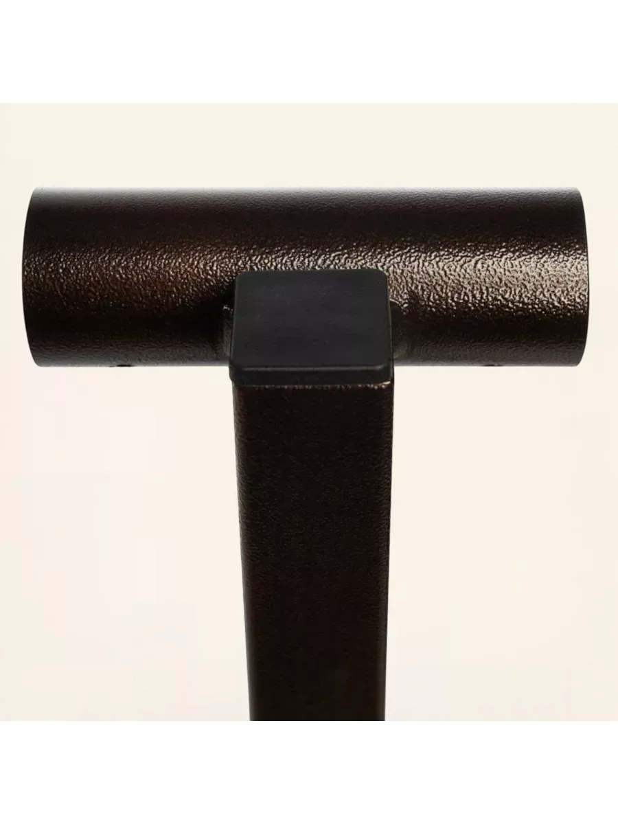 Устойчивая основа позволяет использовать изделие на любом полу, не повреждая покрытие. Круглые деревянные рейки покрыты прозрачным лаком и тщательно отшлифованы. После такой обработки поверхность остается абсолютно гладкой — без риска получить занозу. Стойки окрашены в элегантный черный цвет и дополнены элементами под антик — современное и практичное решение. Они покрыты износостойкой порошковой краской — это дополнительная защита металла от сколов и царапин.