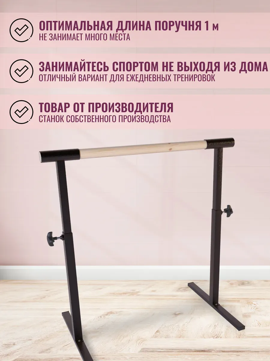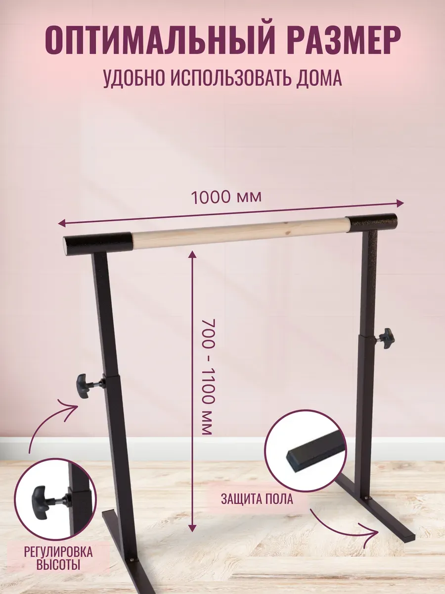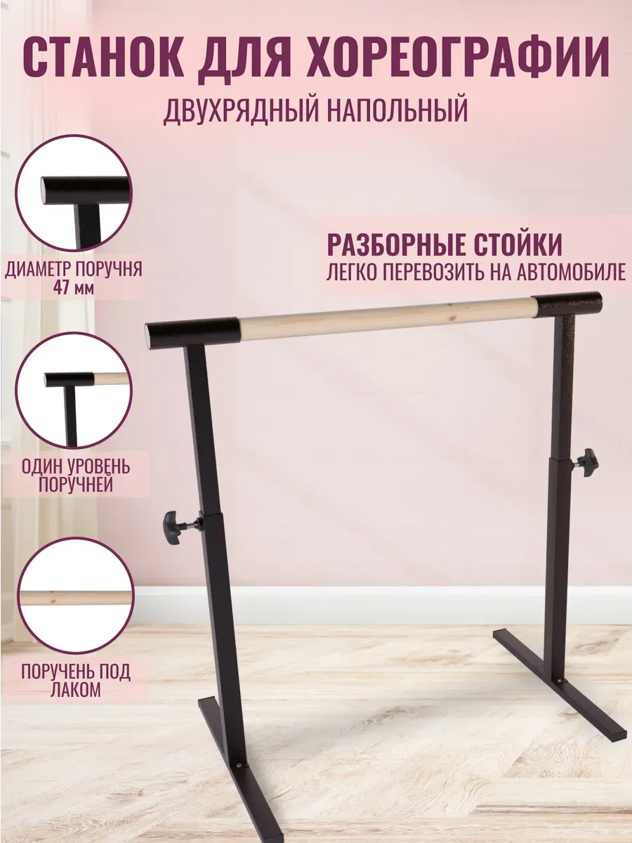 Переносной балетный станок для растяжки — идеальное решение для тренировок по танцам. Устойчивая стойка подходит для занятий балетом, отработки шпагата и общей физической подготовки. Благодаря оптимальной высоте и прочной конструкции, она удобна как для детей, так и для взрослых.