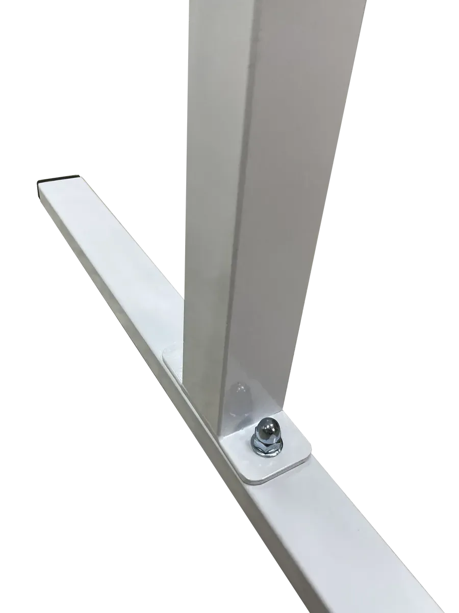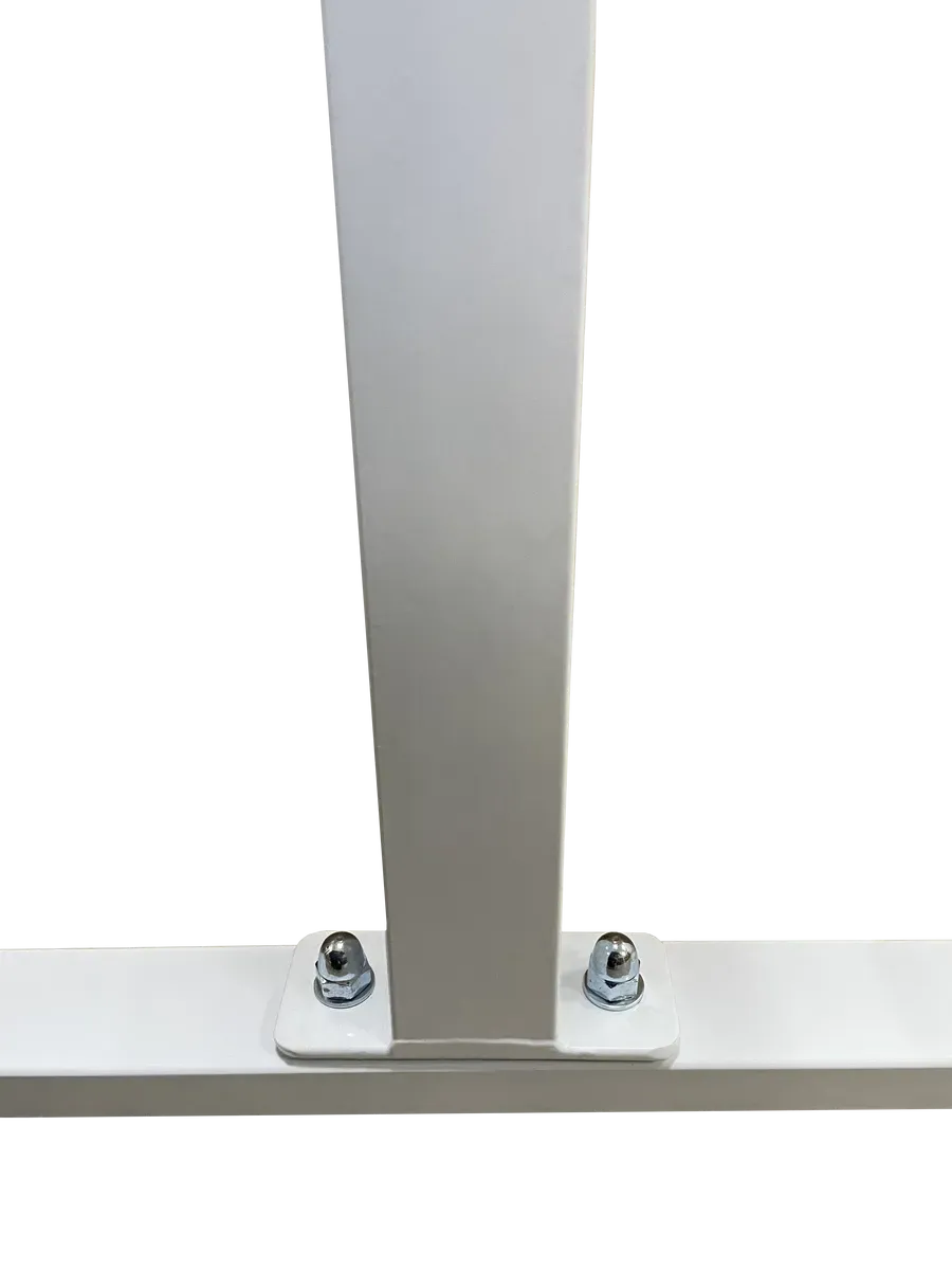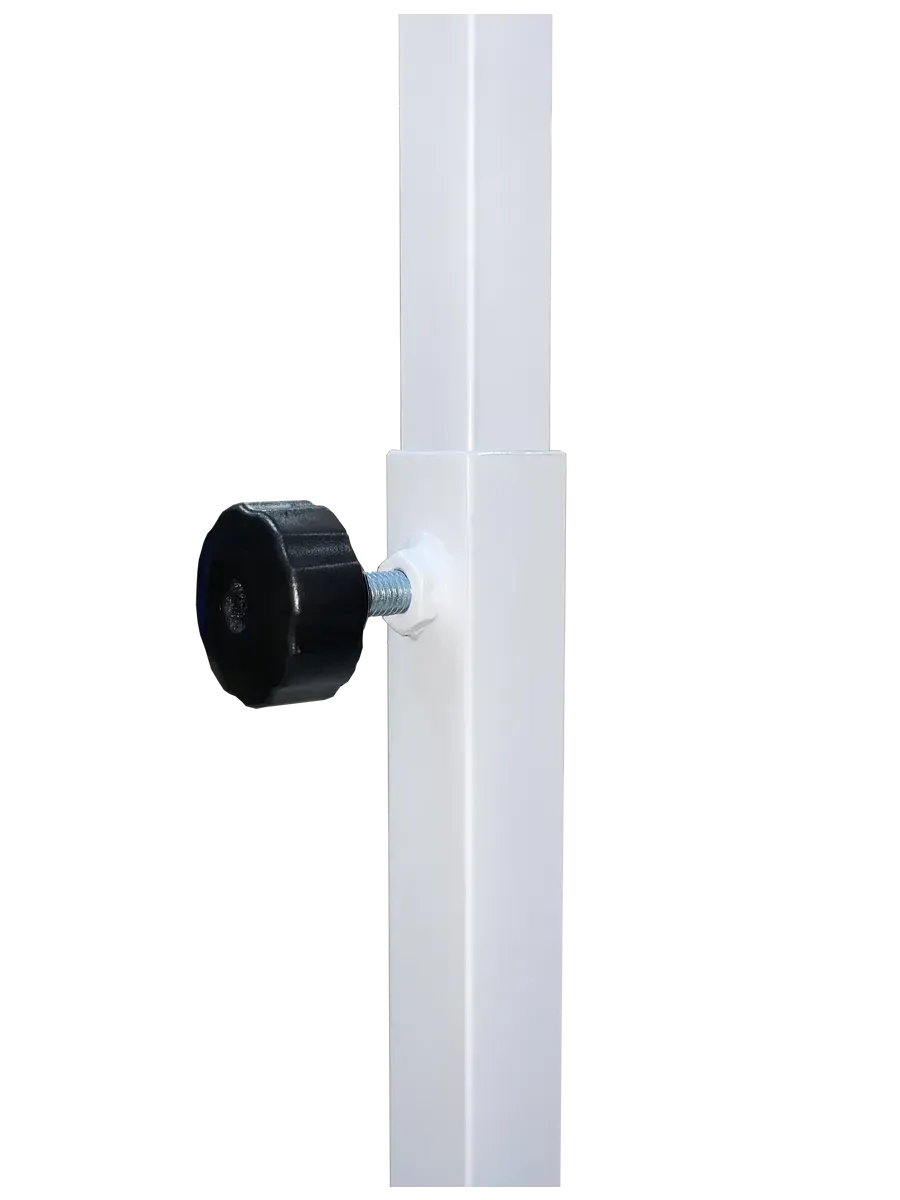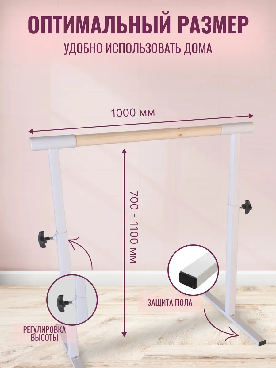 Поручень выполнен из массива сосны длиной 1 м, без покрытия. Стойки покрыты порошковой окраской белого цвета, что обеспечивает их стойкость. Высота поручня регулируется от 70 до 110 см, что позволяет заниматься как детям, так и взрослым с разным уровнем физической подготовки и ростовой группой.