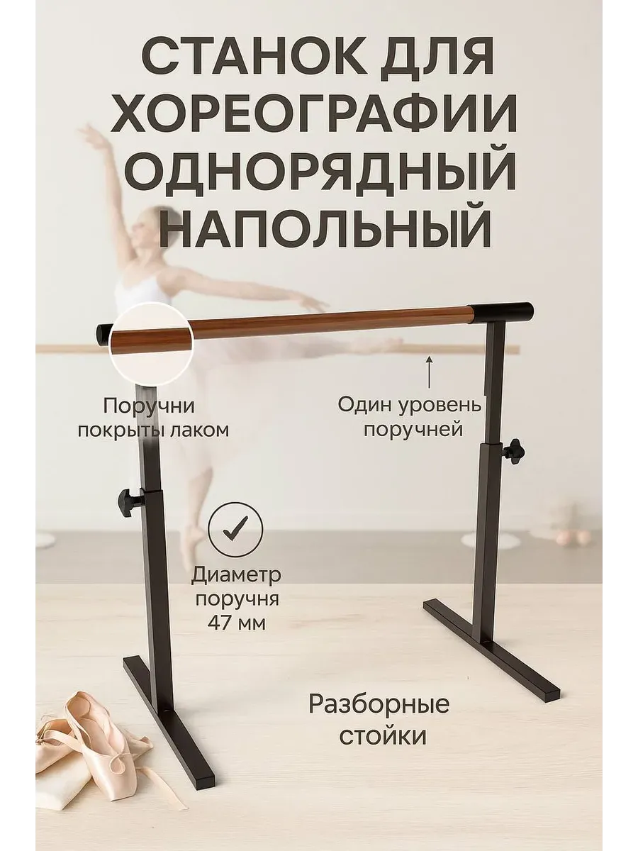 Переносной балетный станок для растяжки — идеальное решение для тренировок по танцам. Устойчивая стойка подходит для занятий балетом, отработки шпагата и общей физической подготовки. Благодаря оптимальной высоте и прочной конструкции, она удобна как для детей, так и для взрослых.