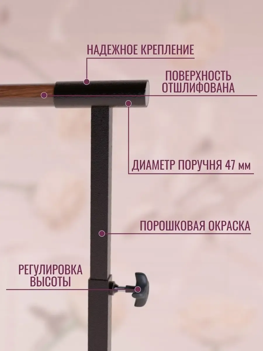 Надежное крепление обеспечивает стабильность при использовании. Это качественный продукт из категории профессиональных товаров, выполненный из натурального дерева и предназначенный для домашнего спорта. Поручни из массива сосны с покрытием "орех" имеют гладкую поверхность и идут без острых краев. Модель устанавливается без сверления, что особенно удобно для занятий гимнастикой в квартире. Это отличный подарок для всех, кто ценит качественные спортивные предметы для развития тела.