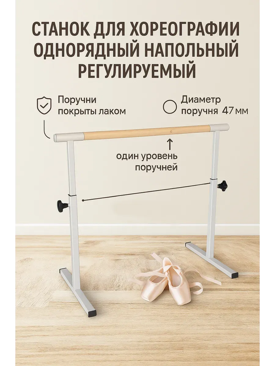 Переносной балетный станок для растяжки — идеальное решение для тренировок по танцам. Устойчивая стойка подходит для занятий балетом, отработки шпагата и общей физической подготовки. Благодаря оптимальной высоте и прочной конструкции, она удобна как для детей, так и для взрослых.