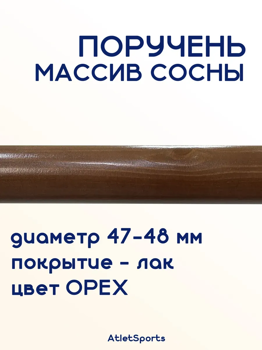 Поручень для балетного станка длиной 1 метр изготовлен из цельного массива сосны и покрыт лаком на водной основе с тонировкой в элегантный цвет орех. Такая обработка делает поверхность не только приятной на ощупь, но и защищенной от внешнего воздействия. Палка подходит для крепления к станкам с внутренним диаметром стаканов 48 мм, благодаря чему ее можно легко использовать как дома, так и в танцевальной студии.
