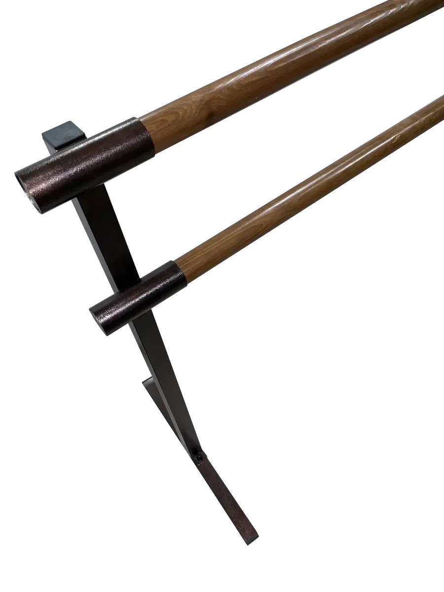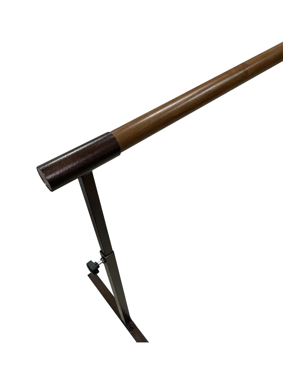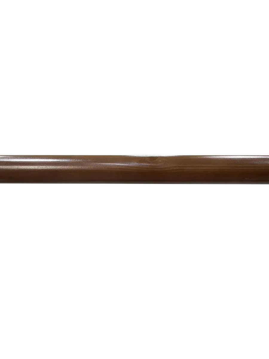 Поручень для балетного станка длиной 1,5 метра изготовлен из цельного массива сосны и покрыт лаком на водной основе с тонировкой в элегантный цвет орех. Такая обработка делает поверхность не только приятной на ощупь, но и защищенной от внешнего воздействия. Палка подходит для крепления к станкам с внутренним диаметром стаканов 48 мм, благодаря чему ее можно легко использовать как дома, так и в танцевальной студии.