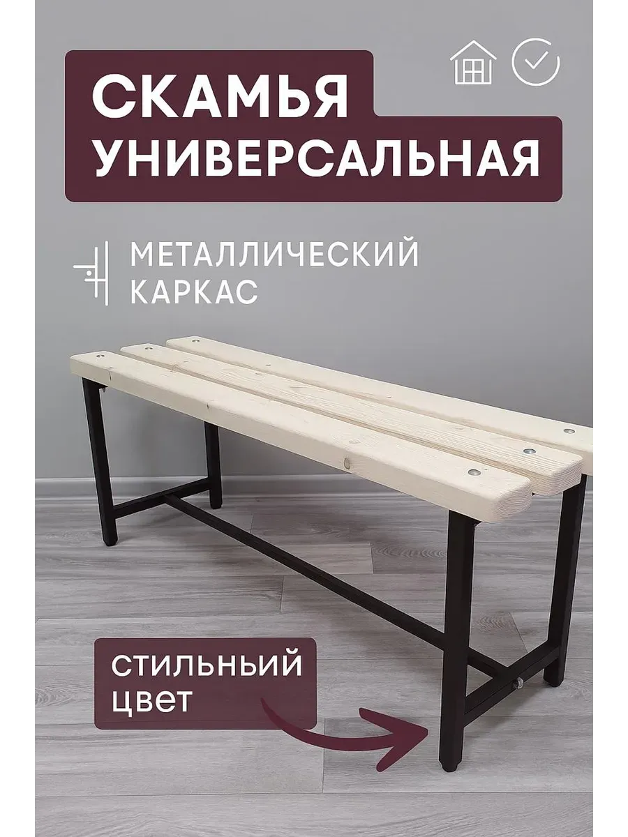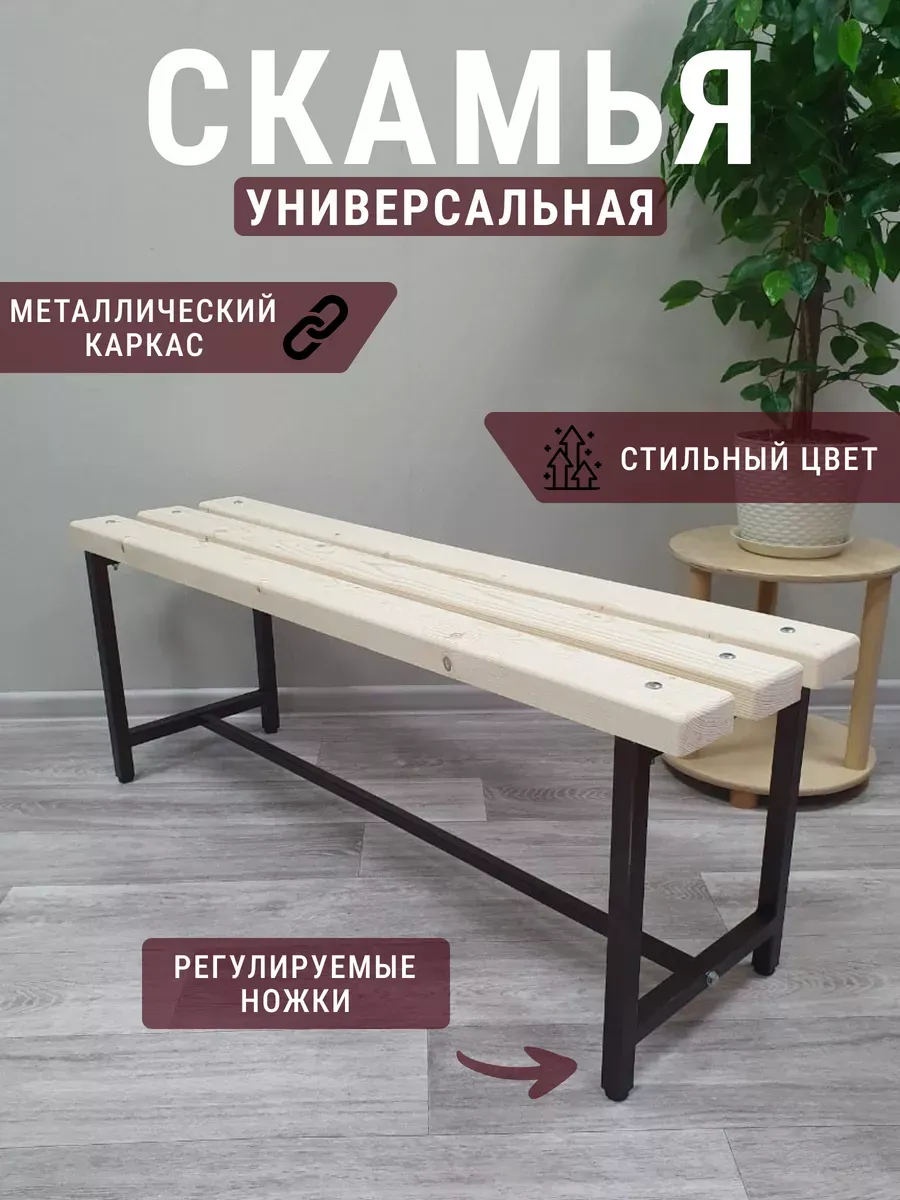 Лавочка станет незаменимой в дачный сезон: на ней удобно сидеть на участке в тени деревьев. Изготовленная из натурального массива дерева, она прекрасно подойдет для бани и сауны. Лавка дополнена регулируемыми черными ножками из металла, что делает ее устойчивой как для дома, так и для улицы. Дизайн в стиле лофт прекрасно вписывается в интерьер банного комплекса. Ее можно поставить в раздевалку, на террасу у бассейна или даже на кладбище.