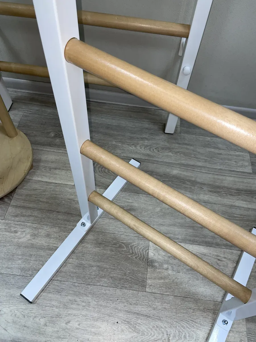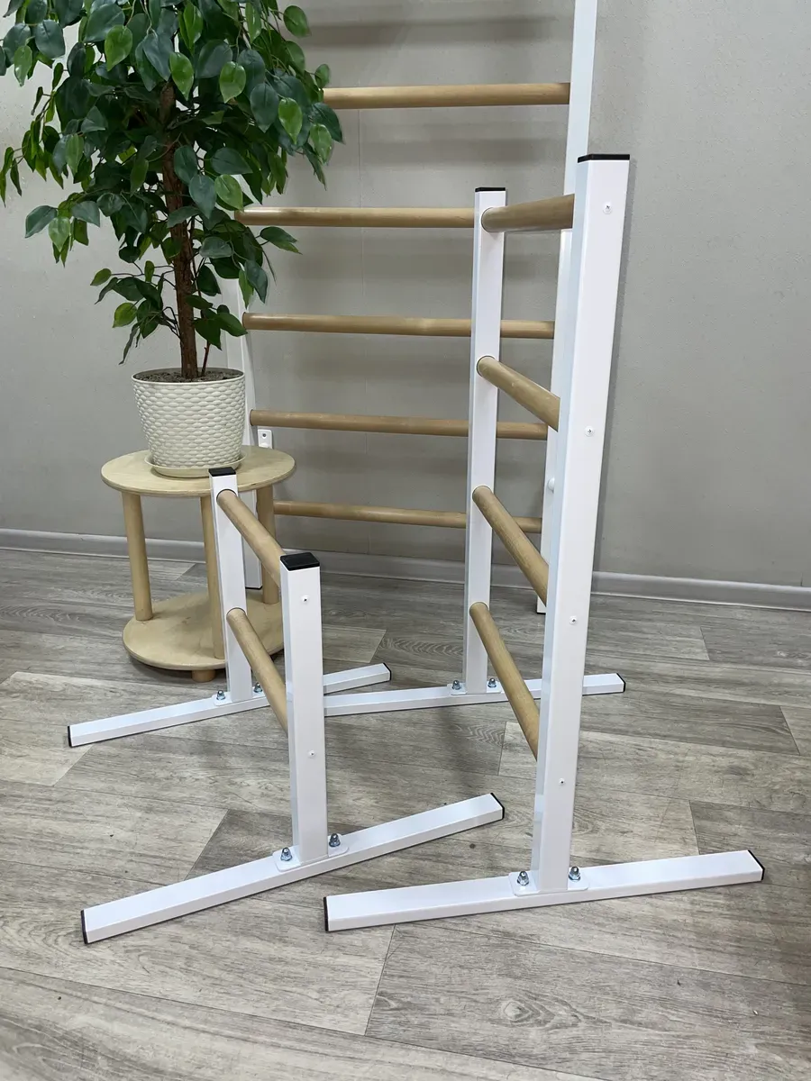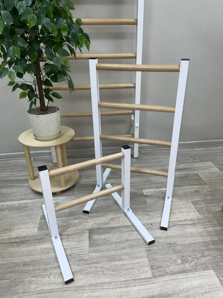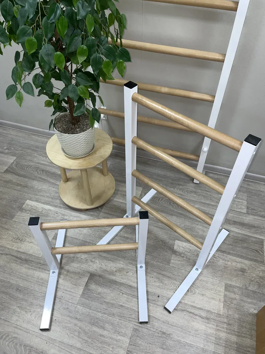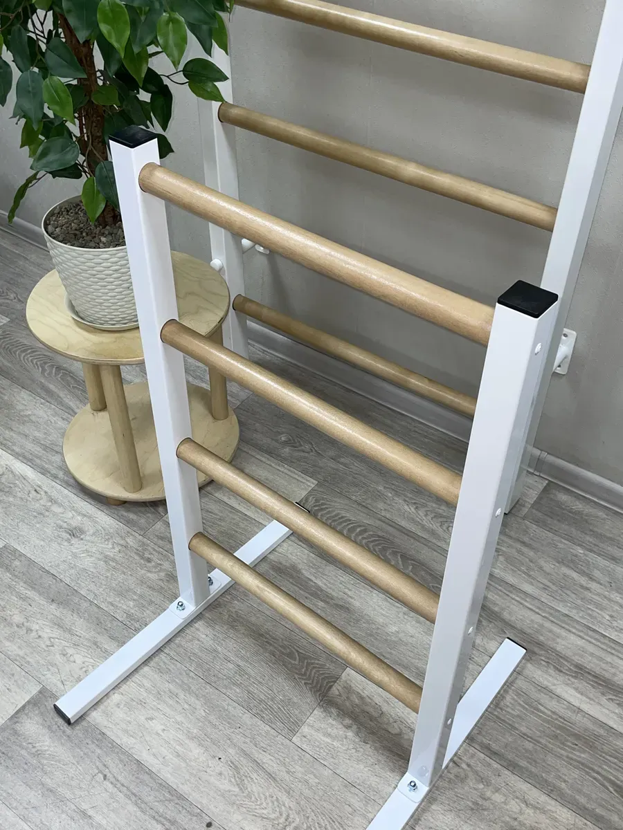 Качество: Прочные металлические стойки и березовые перекладины обеспечивают долговечность и стильный внешний вид.