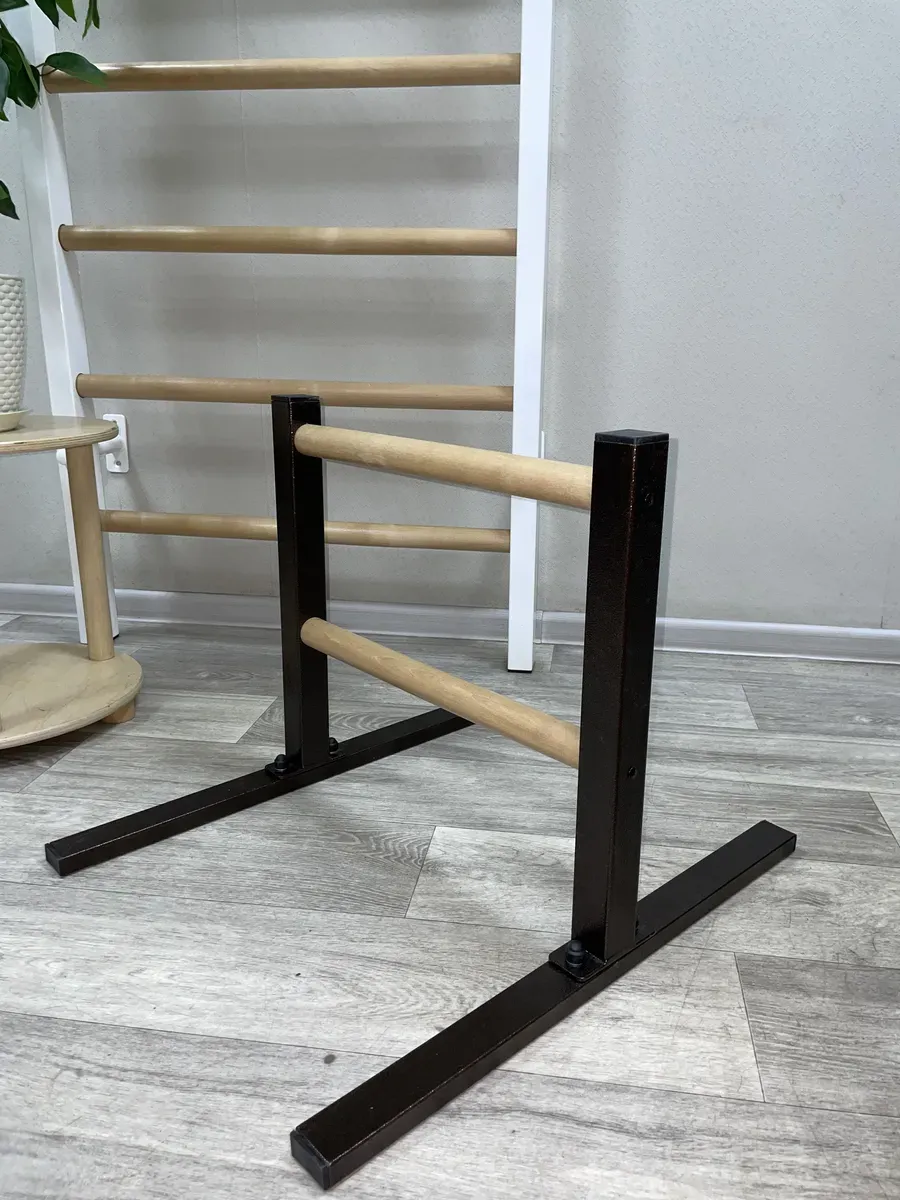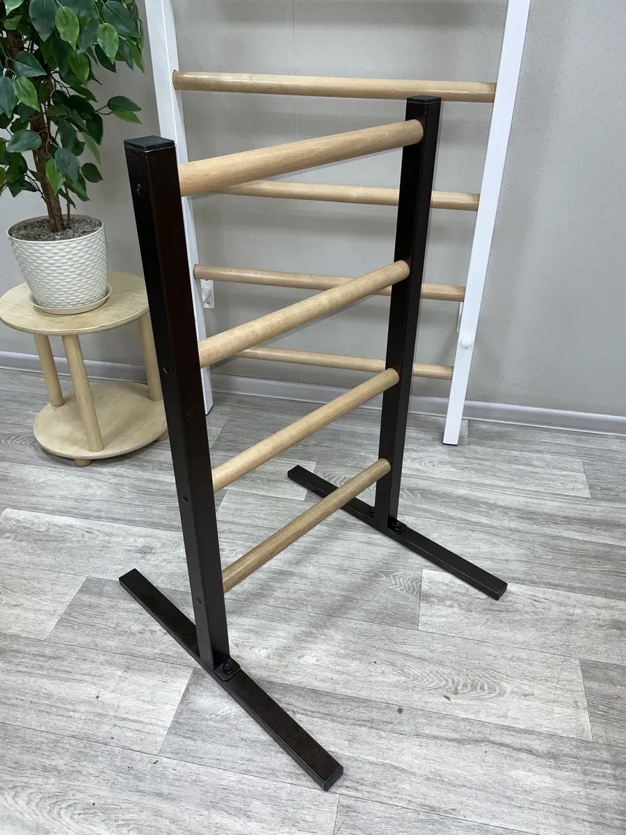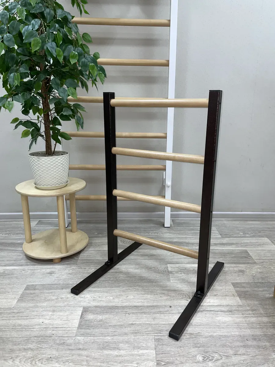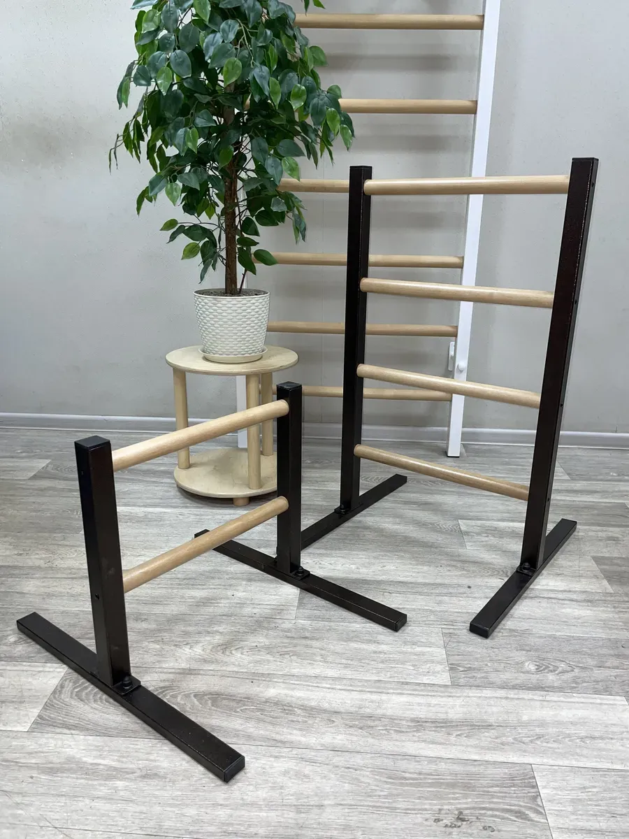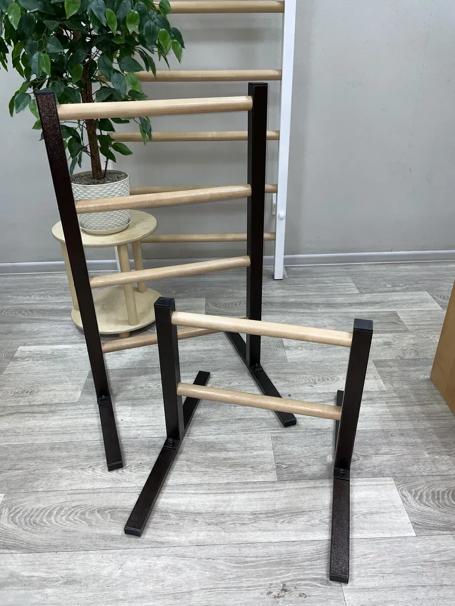 Качество: Прочные металлические стойки и березовые перекладины обеспечивают долговечность и стильный внешний вид.