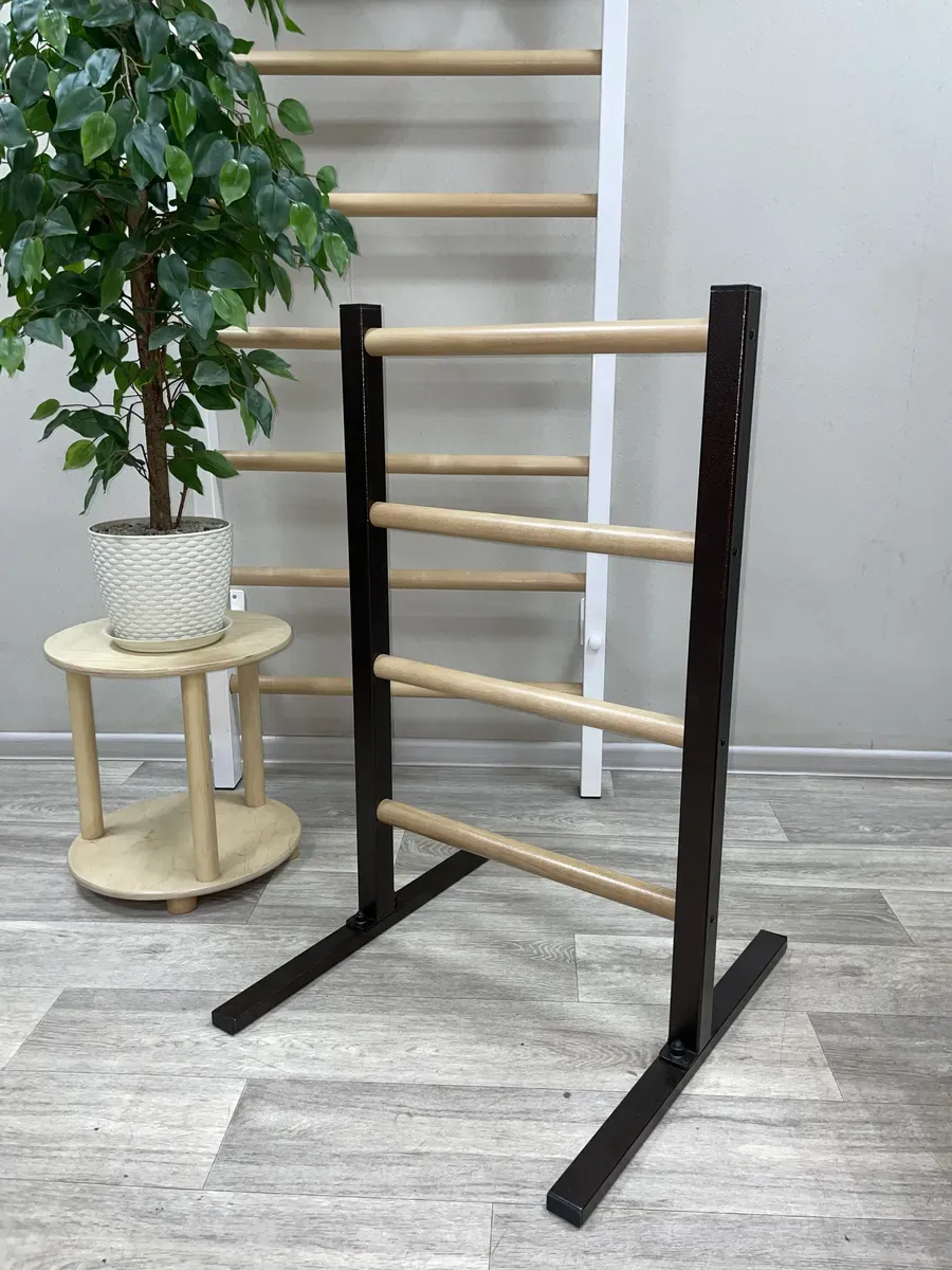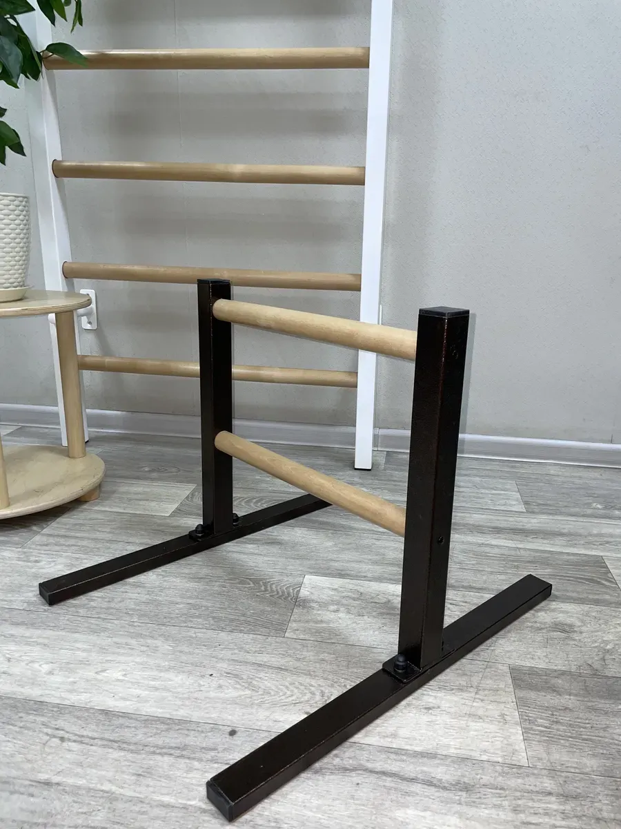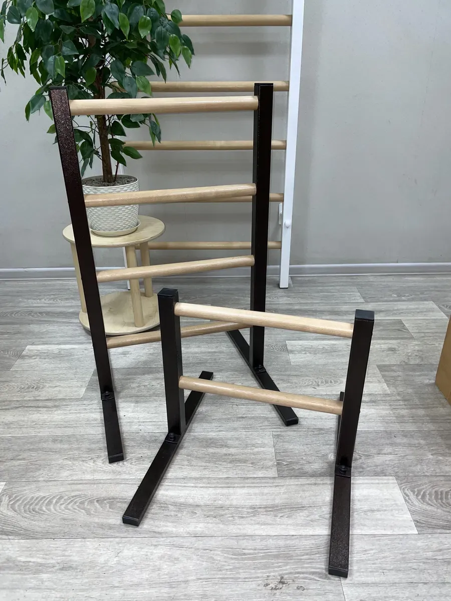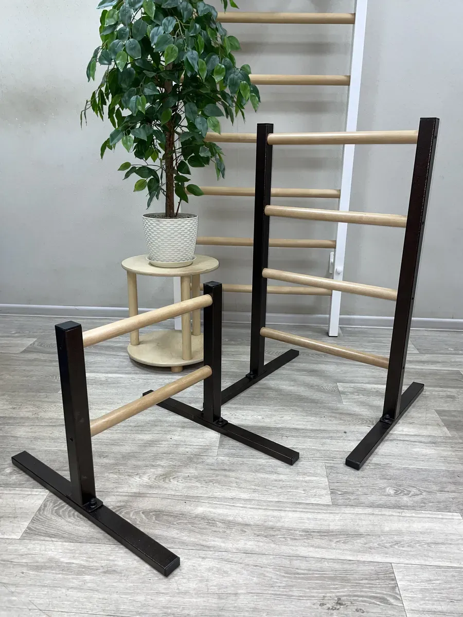 Регулярное использование спортивного инвентаря улучшает осанку, подготавливает тело к шпагату и способствует выработке ровной линии спины. Он подойдет для взрослых и детей, легко вписывается в интерьер и занимает минимум пространства. Черный корпус и брусья из дерева делают его эстетичным элементом интерьера. Ножки не царапают и не повреждают напольное покрытие. Такой комплект из двух штук идеально дополнит домашний спортивный уголок или студию.