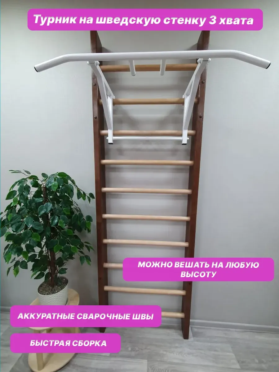 Организуйте спортивный зал у себя дома с помощью навесного турника «Три хвата» (шведская стенка приобретается отдельно)! Этот турник идеально подходит для домашних тренировок и занятий лечебной физкультурой (ЛФК).