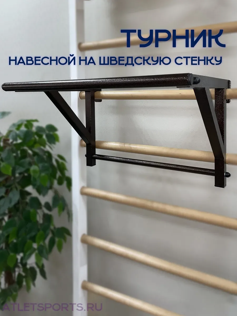 Турник на шведскую стенку узкий хват отлично подойдет как взрослым, так и детям. Он прочный, перекладина выполнена из толстостенного металла. С крюками для навешивания на перекладины шведской стенки, хорошо фиксируется, не шатается.