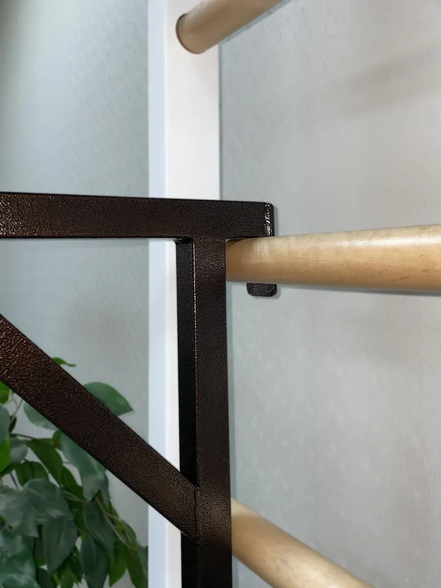 Аккуратные сварочные швы, покрыт качественно порошковой краской Можно перемещать на любую необходимую высоту на шведской стенке.